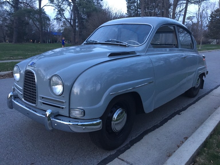 I recently had the opportunity to talk with Michael about his 1962 Saab 96. I have seen the car once or twice around the neighborhood, but didn’t know the owner. He shared that he bought the car for his wife who likes vintage Saab’s. How cool is that?