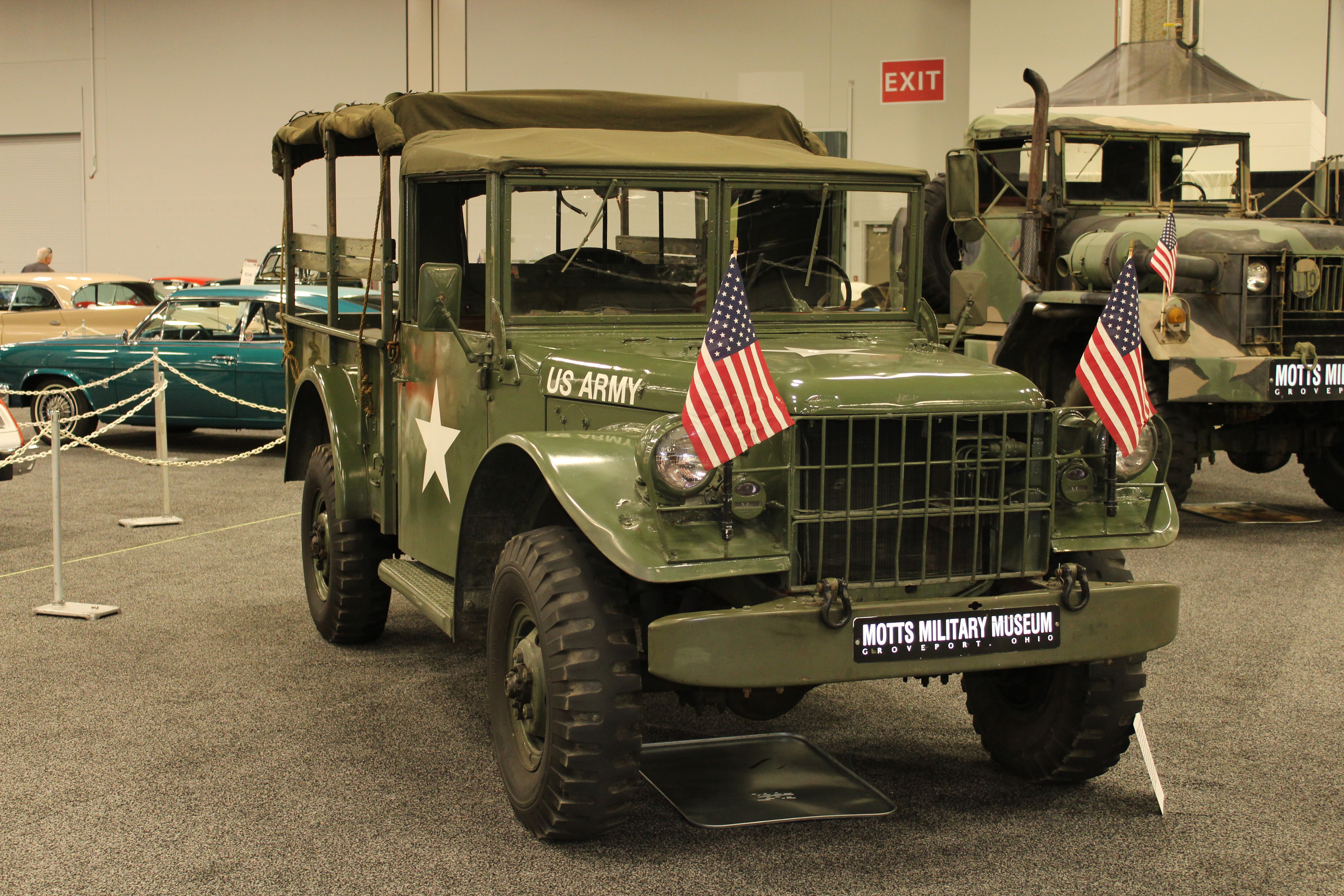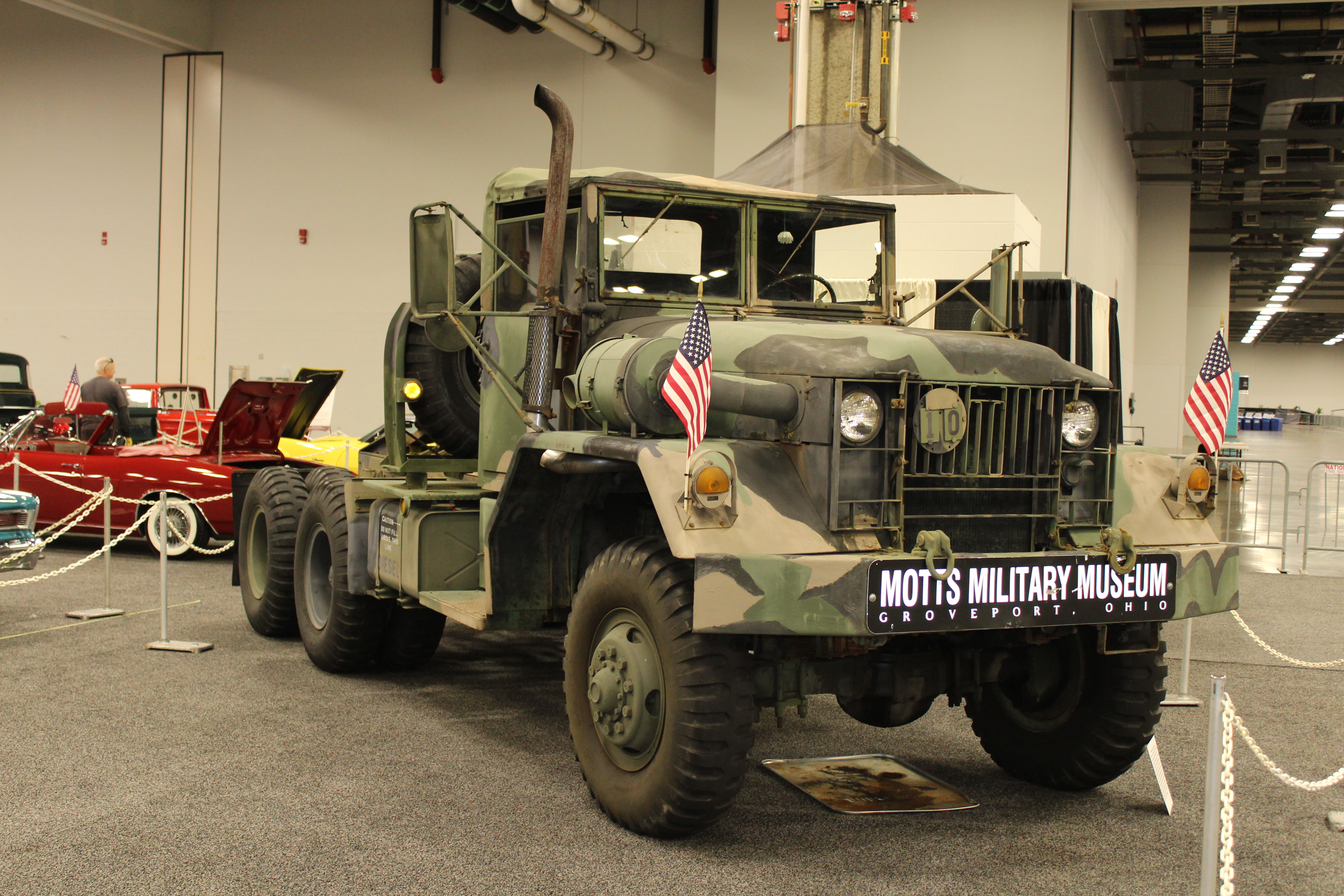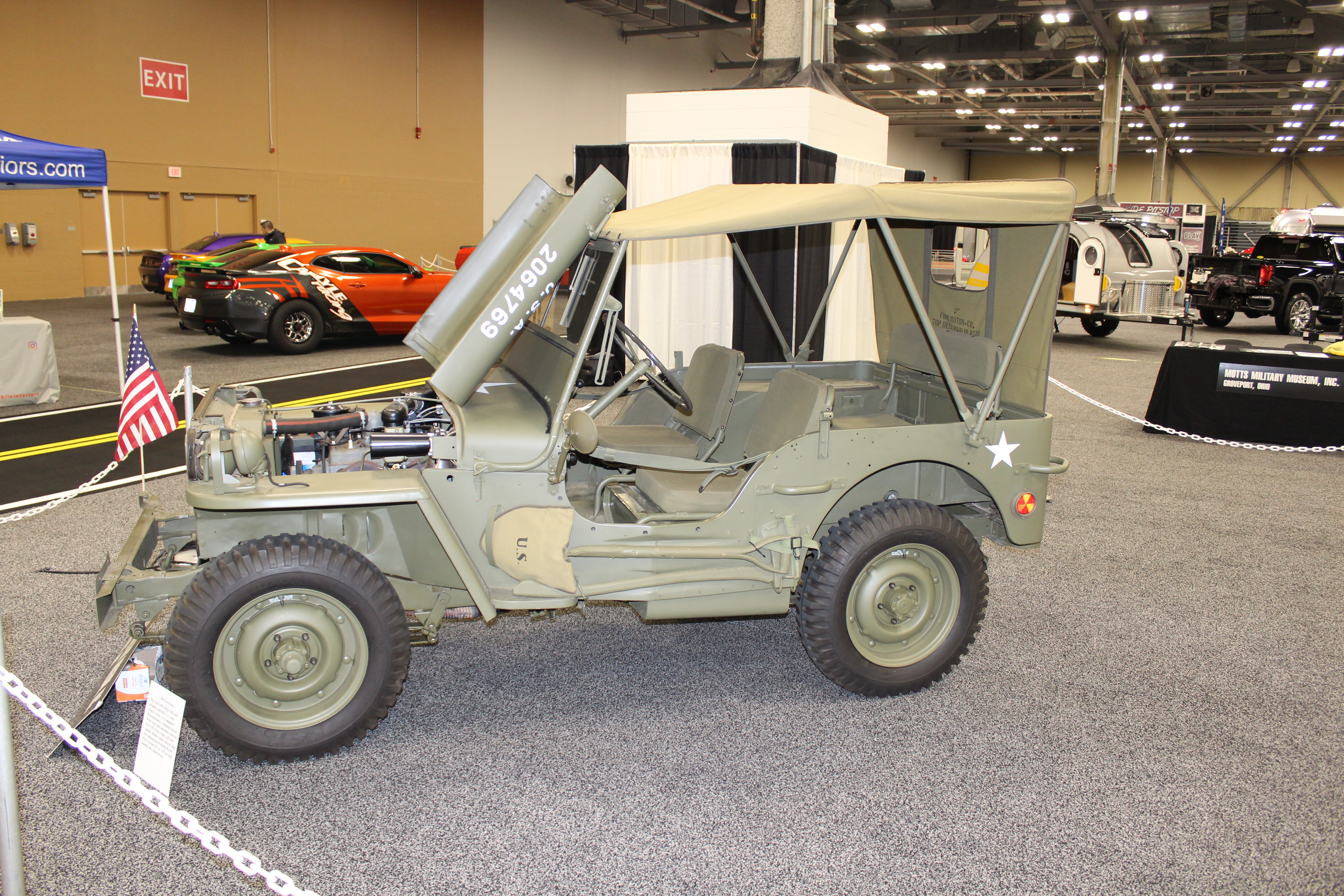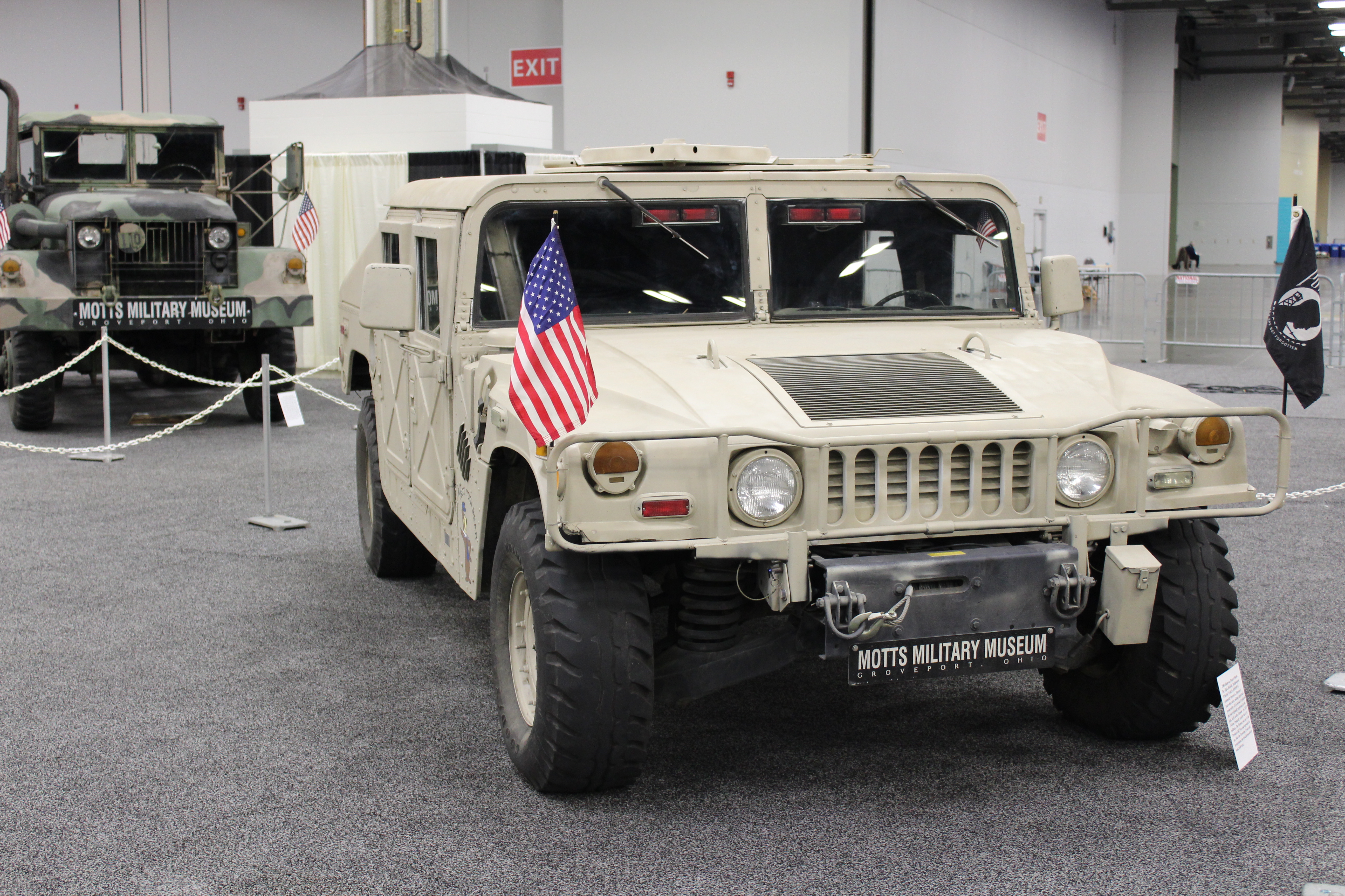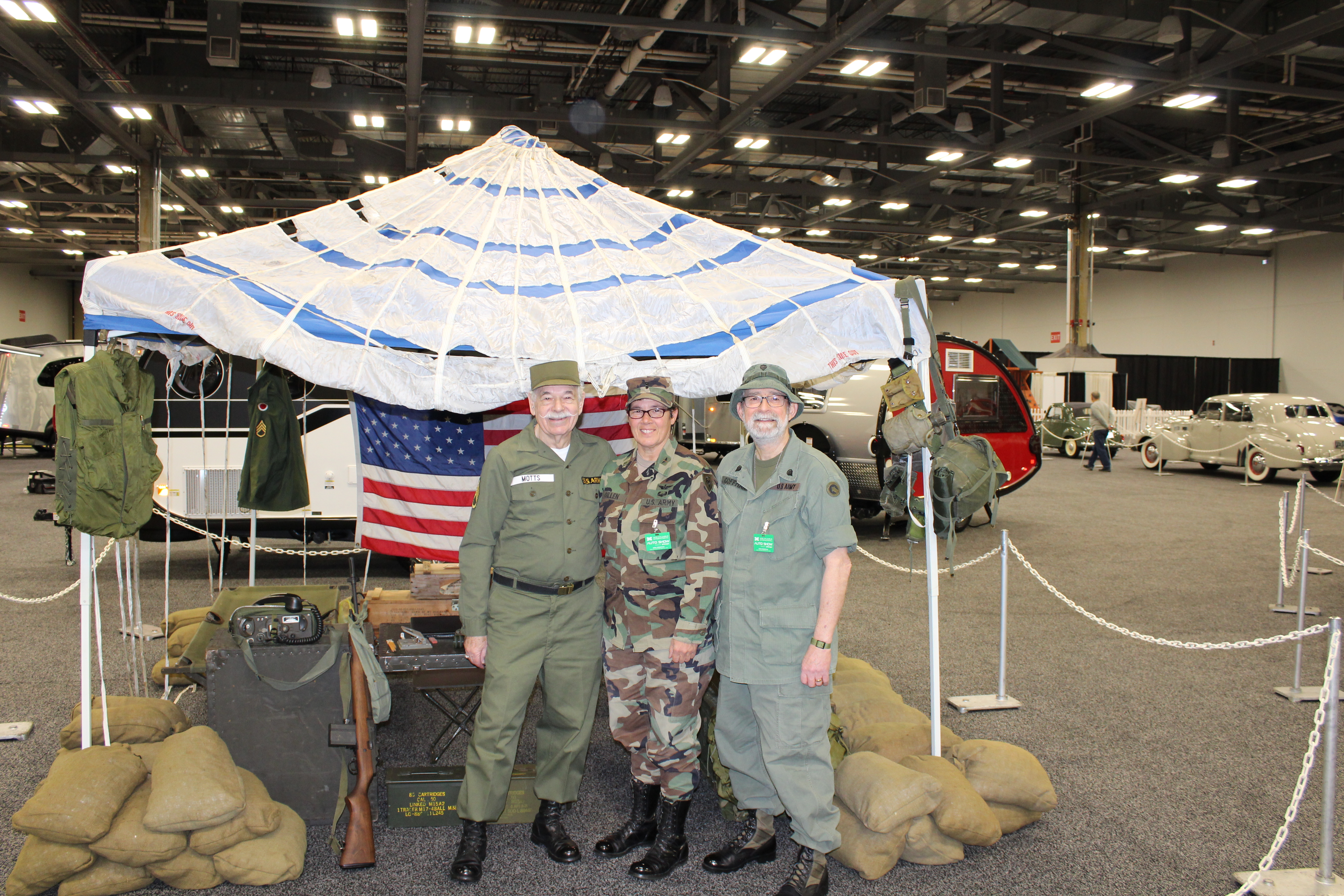 A special exhibit from Motts Military Museum is setup with military vehicles that served during World War II, Korea, Vietnam, and Desert Storm. The team is even dressed in military uniforms with sandbags and other equipment at their tent.