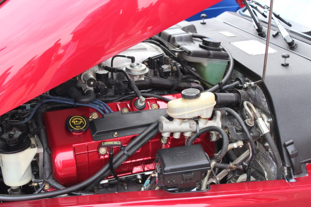 We spoke to the owner of this Panoz Roadster. He had one custom built at the end of the production run. Each Panoz has a vehicle name plate with the name given by the owner. This roadster is named Ruby, for her ruby red paint.