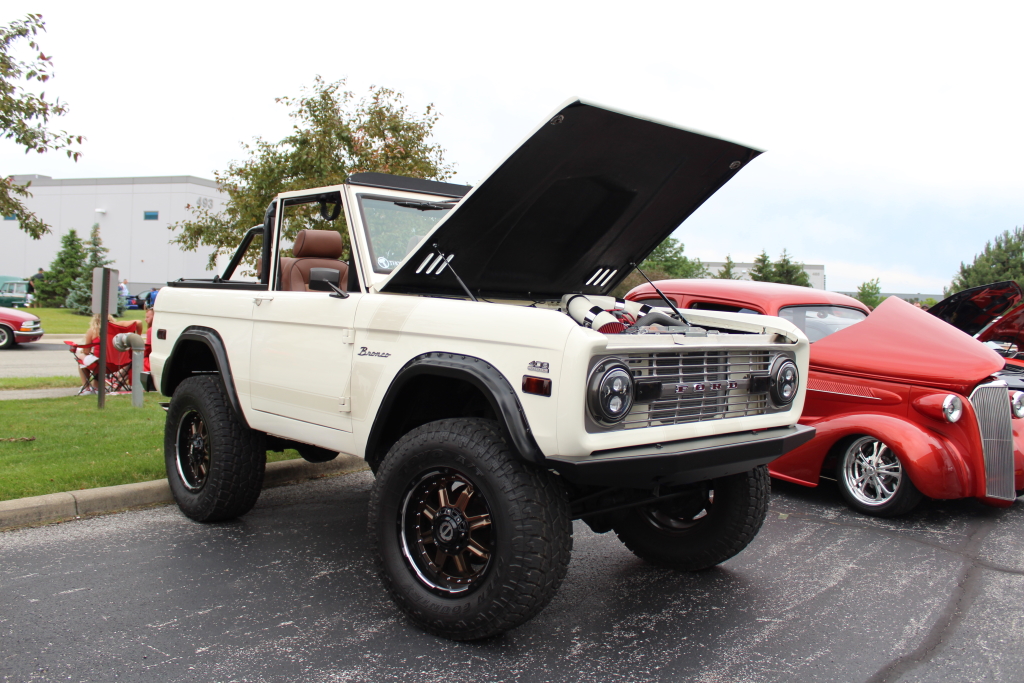 Outside the shop, there was a range of vehicles from Power Tour participants and local hot rodders. This custom Ford Bronco was on display in all its restomod glory.