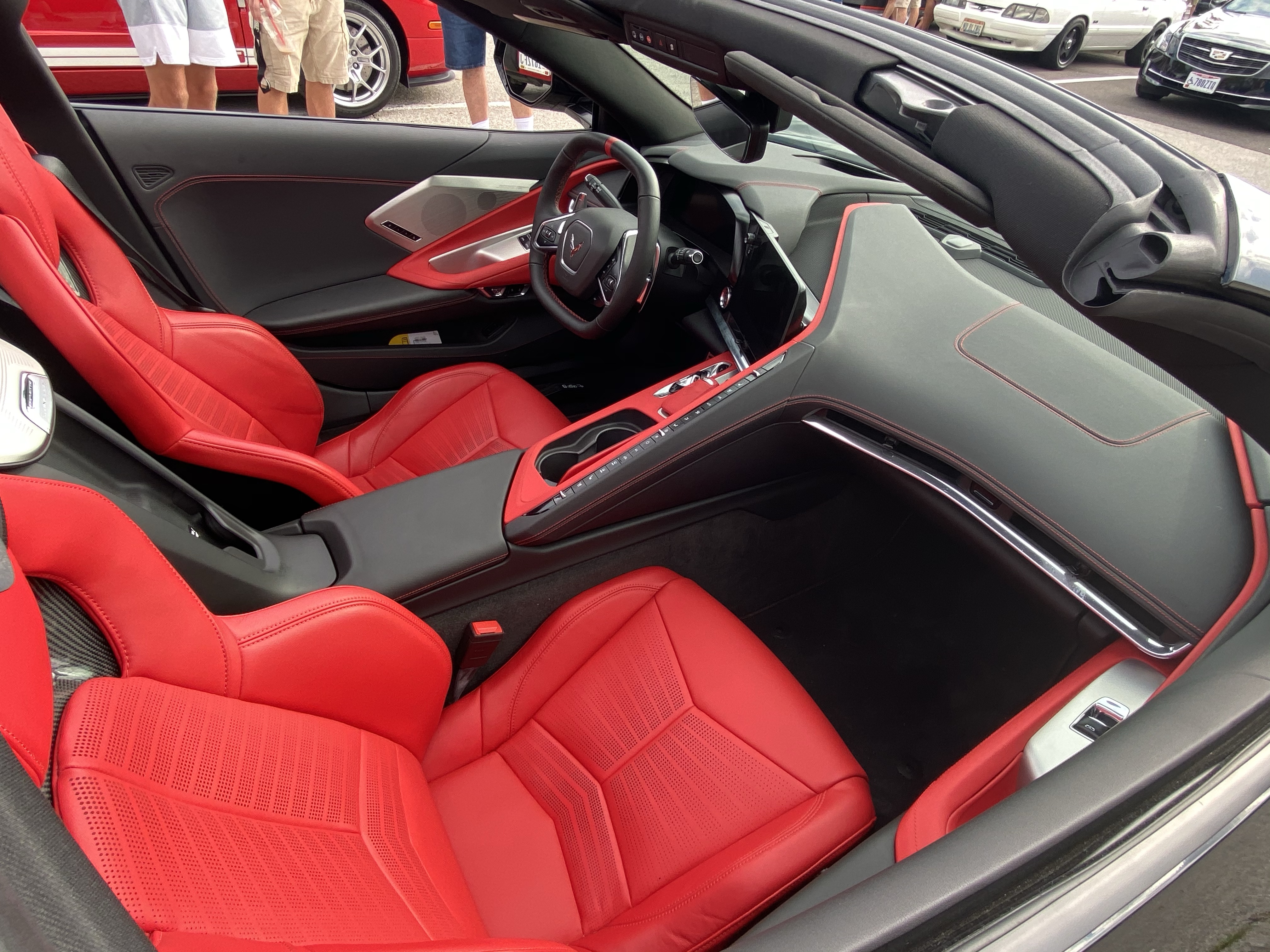 Speaking of Corvettes, I caught up with Brian and got a chance to see his 2020 Corvette. Brian is a car guy and has quite a collection. He ordered his C8 last year and received one of the first in Columbus back in February. The color combination screams sports car and it looks fast even while parked.