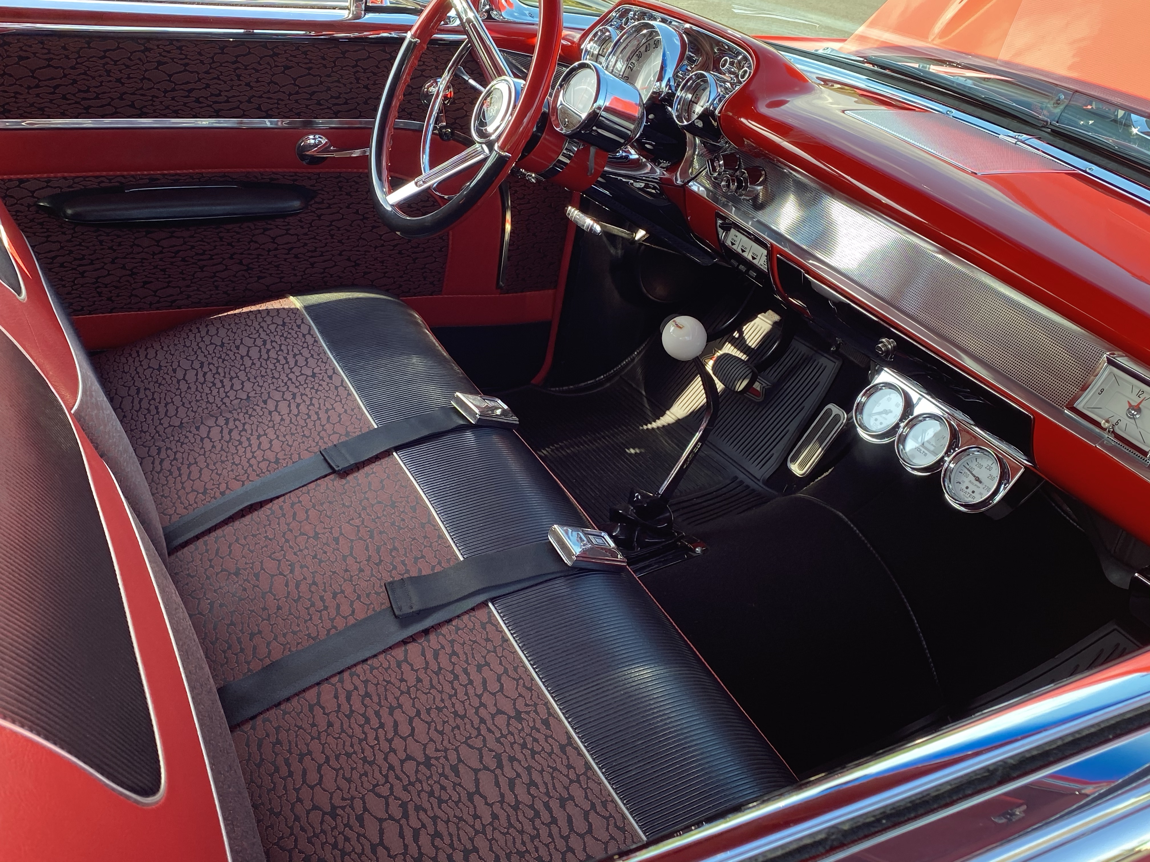 I met Mike, the owner of a red 1957 Chevrolet Bel Air. He has owned this car since the 1980’s and it is pristine. A small block Chevy powers this ride and shifting is managed through a Hurst shifter.