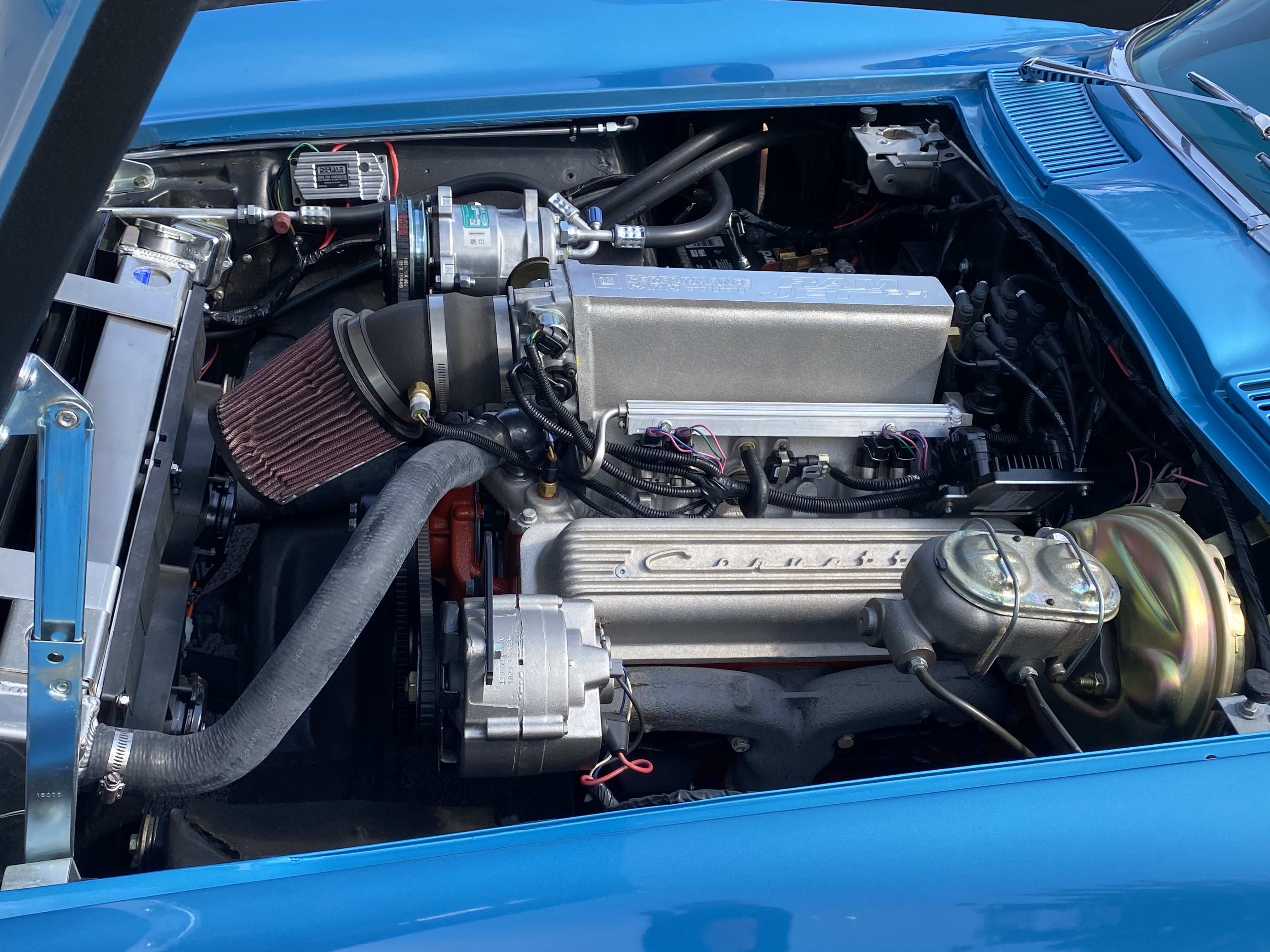 My favorite Corvette generation is the C2 and one of my favorite colors is blue. So I had to talk with Bob about his Nassau Blue Corvette. He has owned several Corvettes through the years and recently got this one put together. Custom touches include the side pipes and electronic fuel injection.
