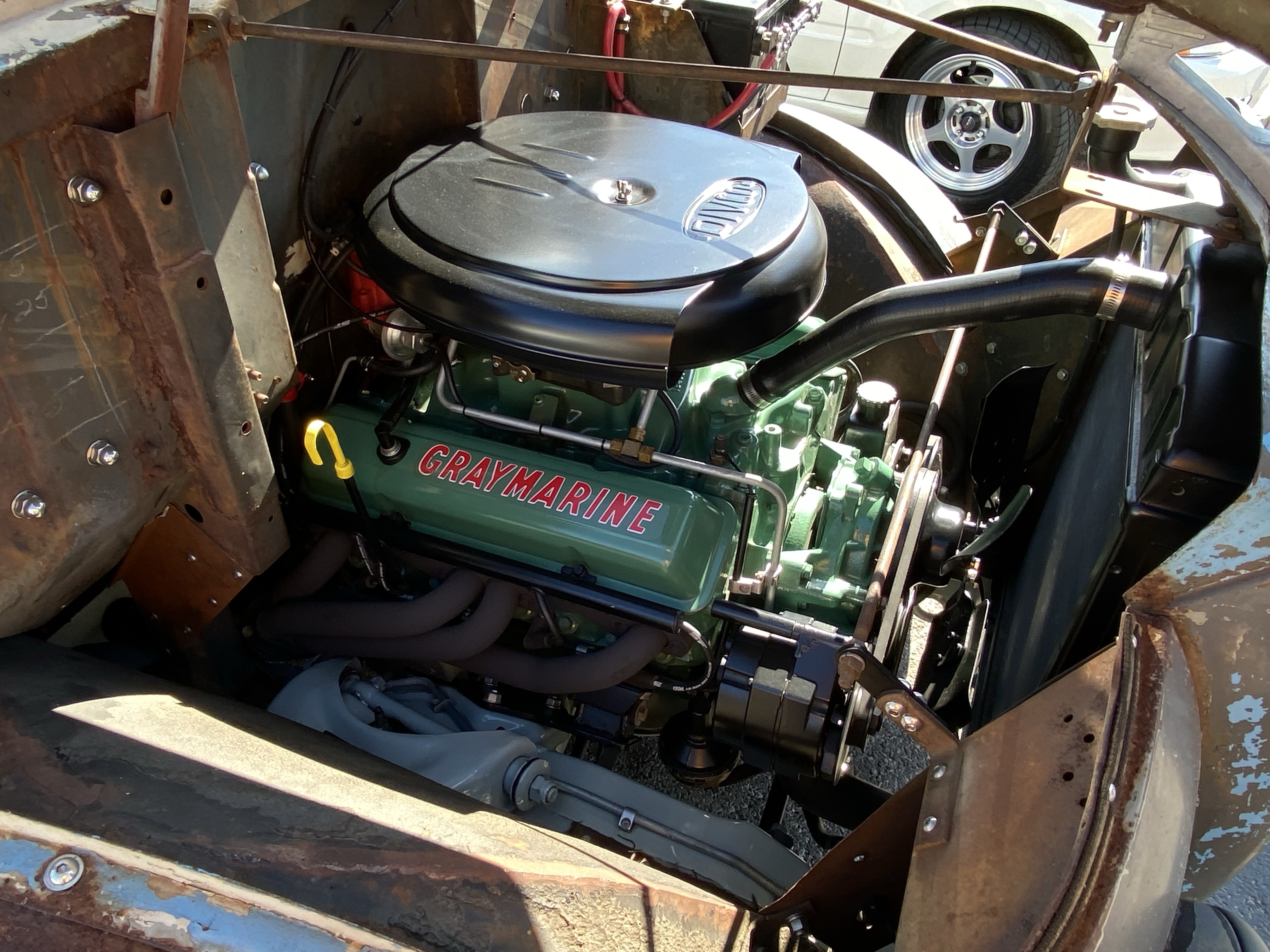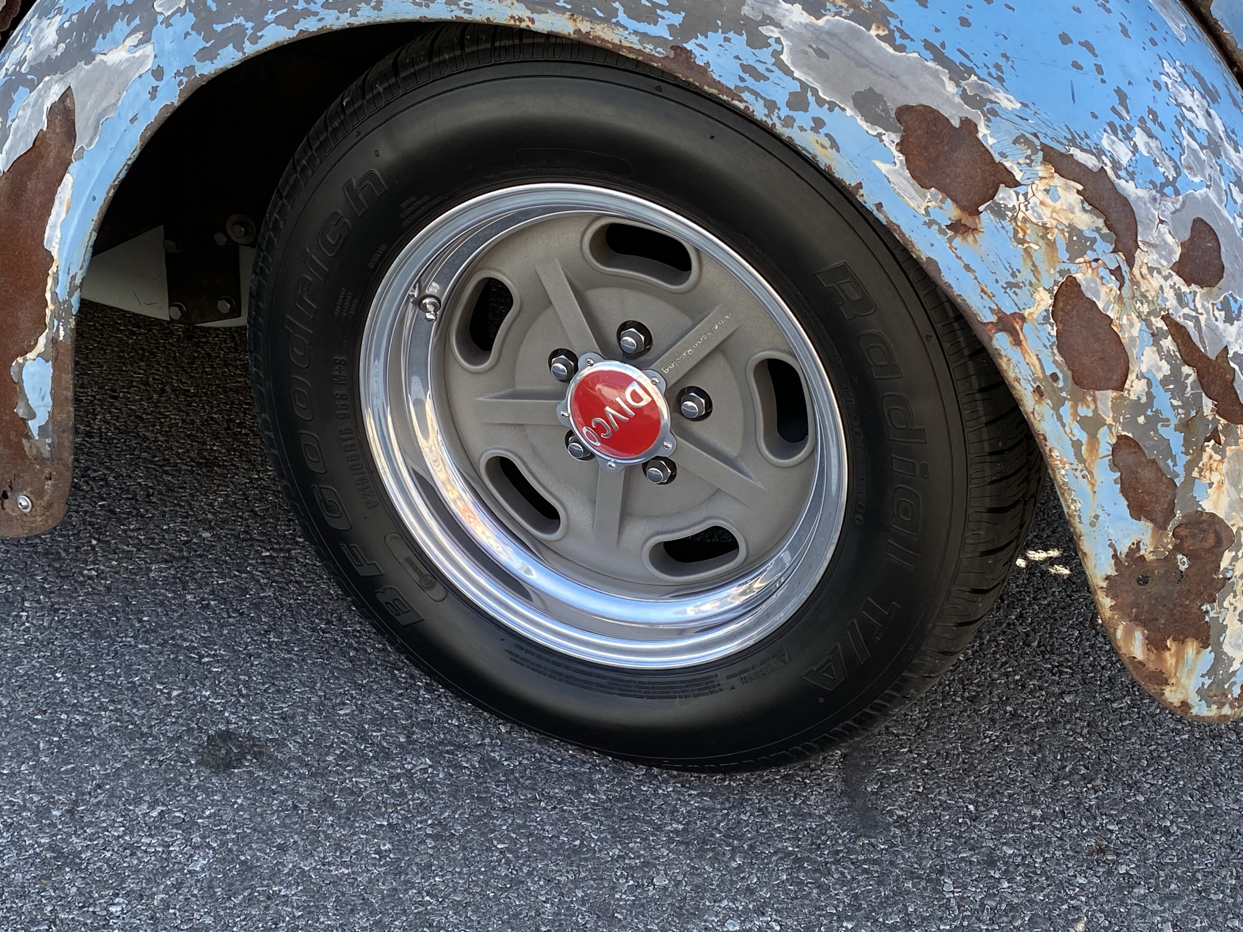 We also met a couple of guys with a 1962 Divco. For those not as familiar, DIVCO stands for Detroit Industrial Vehicle Company and their trucks served in many fields in the 1900’s. This particular truck was owned by a bakery and was used to deliver bread, cakes, and other baked goods. You can still see the company information on the side of the truck. You will also notice the custom wheels incorporating the Divco logo.