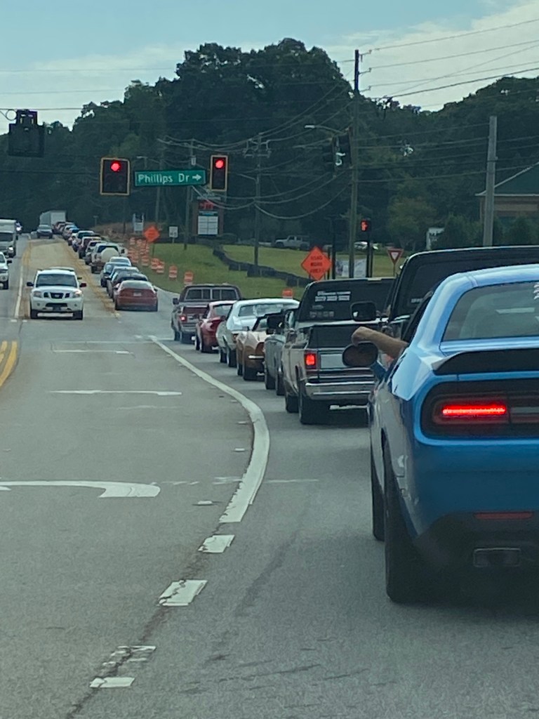 The route took longer than expected as we experienced several bottle necks along the way. Small towns are fun to drive through, but thousands of cars encountering a 4-way stop in the town square can create a traffic nightmare.